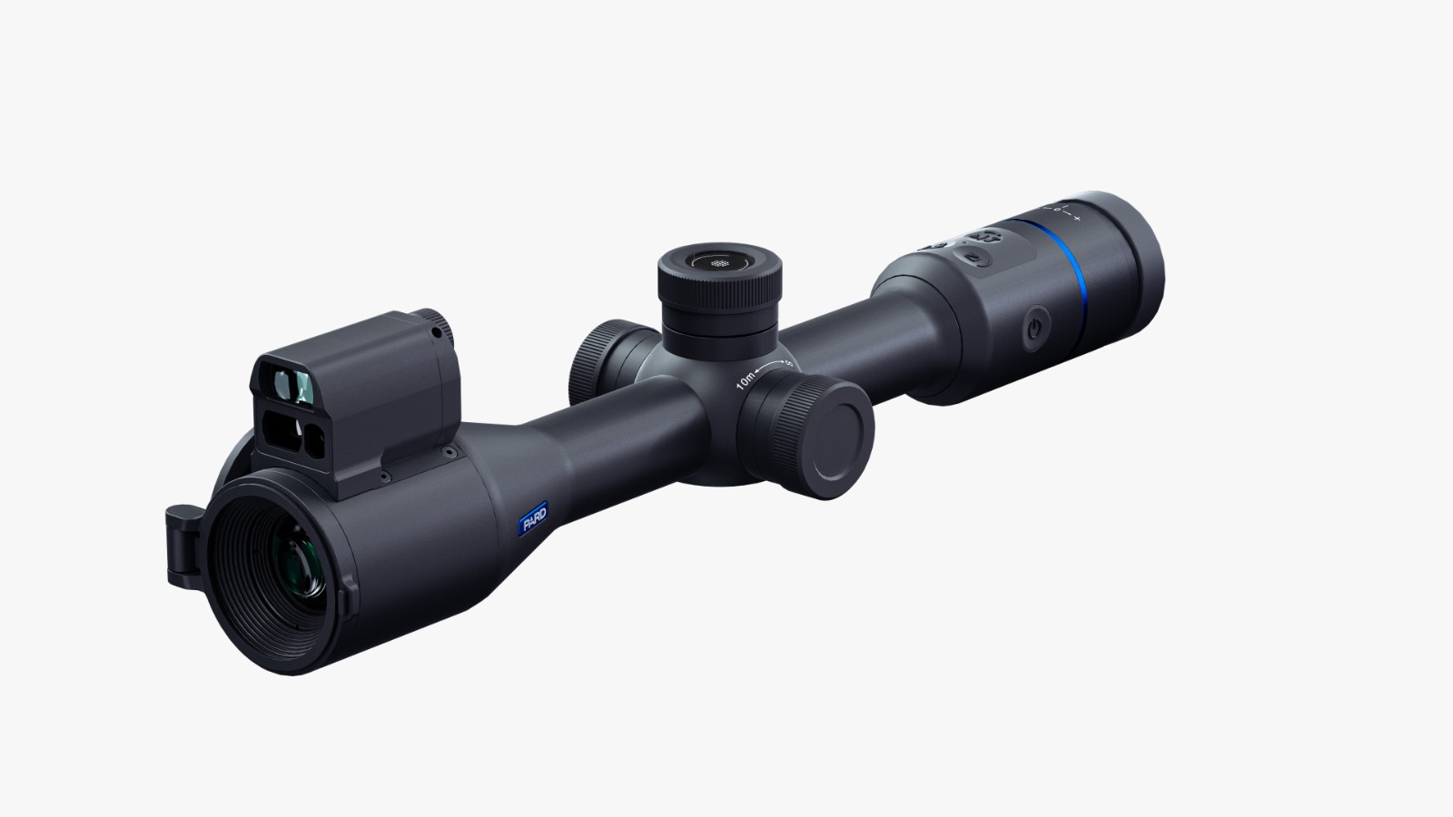 O equipamento também possui LRF, que é um medidor de distância a laser. Ele calcula automaticamente a metragem até o alvo, facilitando ajustes de tiro e aumentando a precisão, principalmente em disparos a média e longa distância.